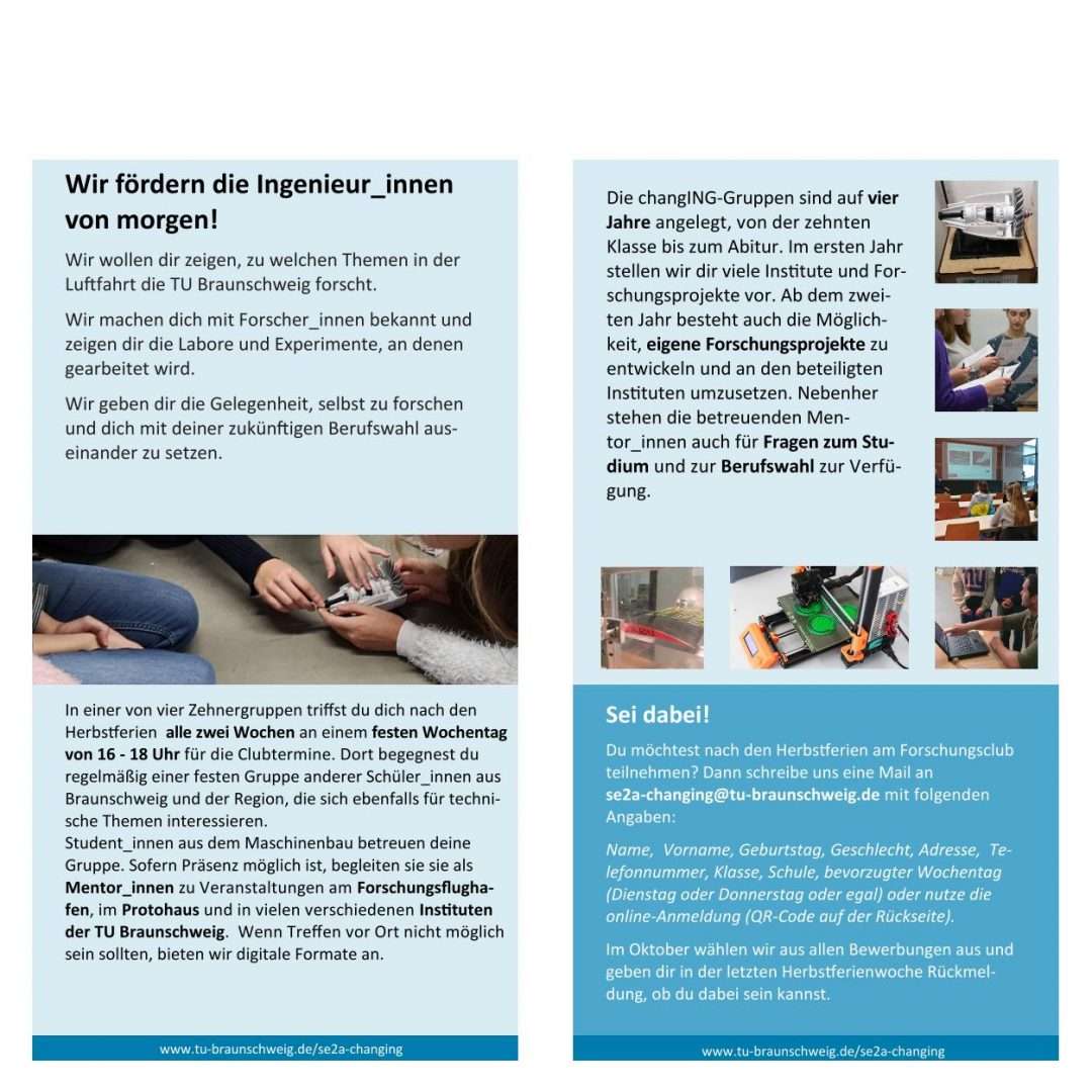 Wir treffen wir uns ca. alle zwei Wochen nachmittags an einem Wochentag von 16-18 Uhr für unsere Clubtermine. Dort triffst du regelmäßig eine feste Gruppe anderer Schüler_innen aus Braunschweig und der Region, die sich wie du für technische Themen interessieren. Student_innen aus dem Maschinenbau begleiten dich und deine Clubgruppe als Mentorinnen zu Veranstaltungen am Forschungsflughafen, im DLR_School_Lab und in vielen verschiedenen Instituten der TU Braunschweig. Der Club wird von deiner Schule als AG anerkannt und bietet dir auch die Möglichkeit, Facharbeiten unter unserer Betreuung durchzuführen.